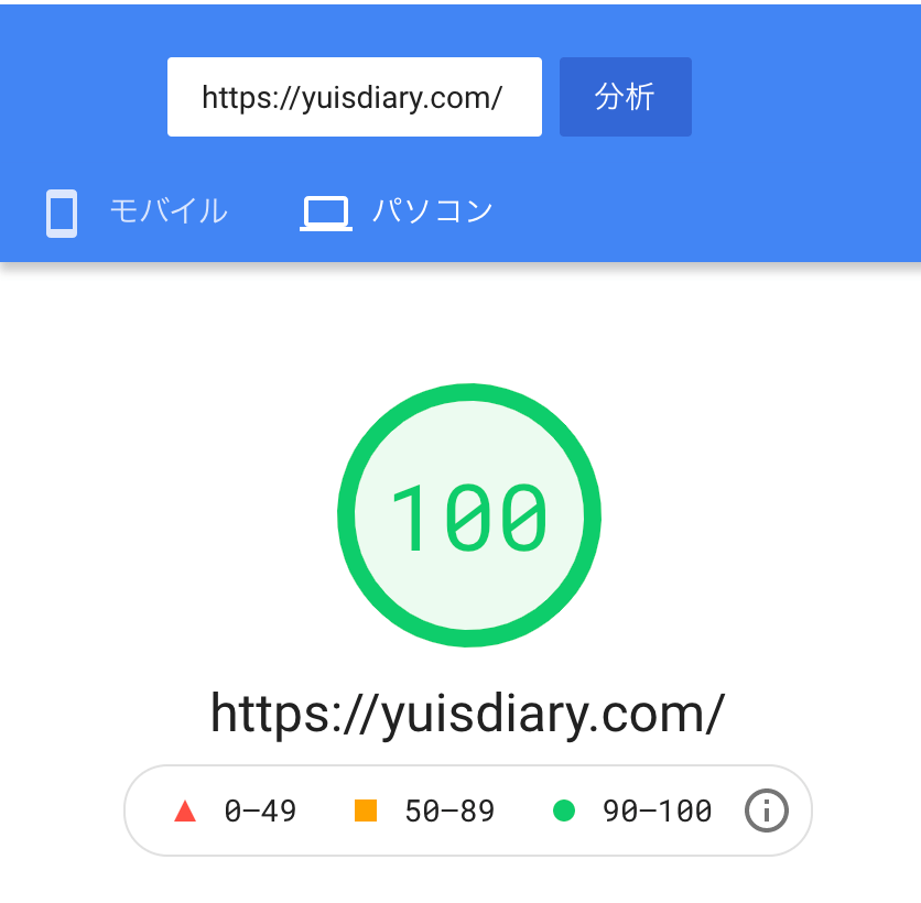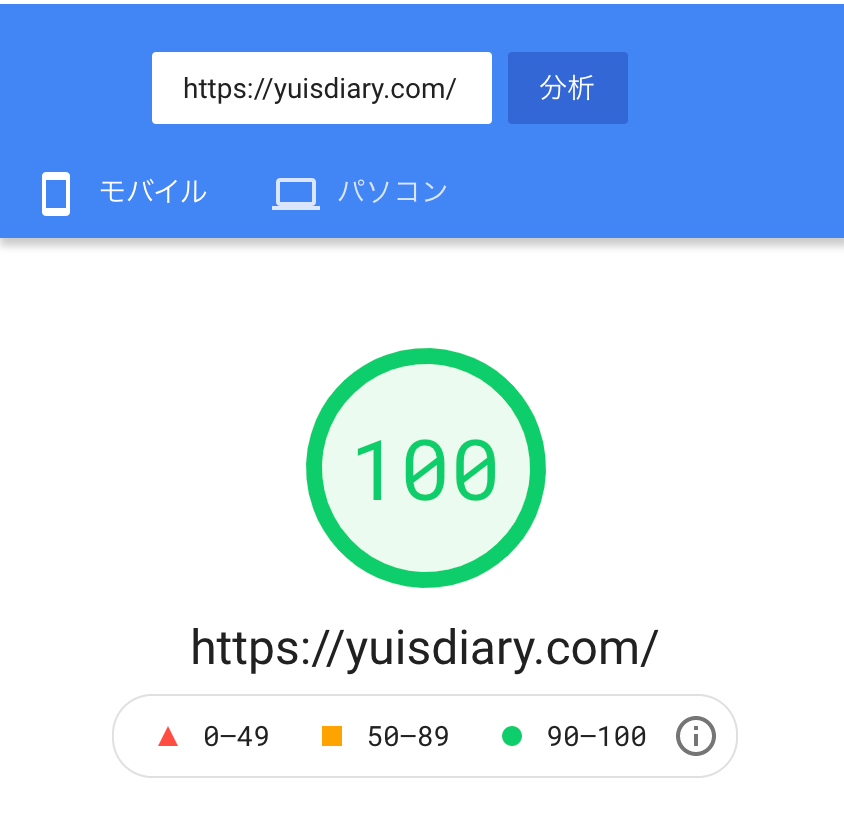 そんな当ブログも、本記事でご紹介する方法を試してみた結果、サイトスピード100を記録。