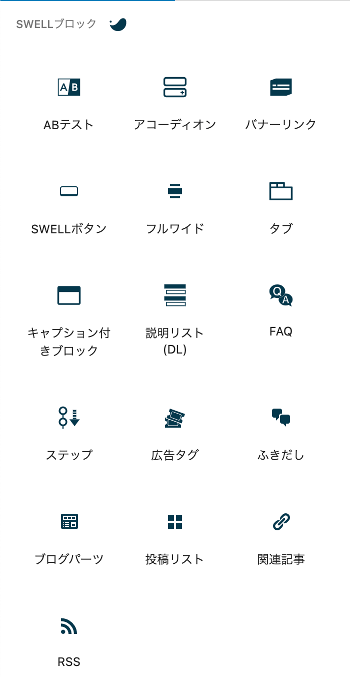 「SWELLブロック」というSWELL専用のオリジナルブロックもたくさん。
